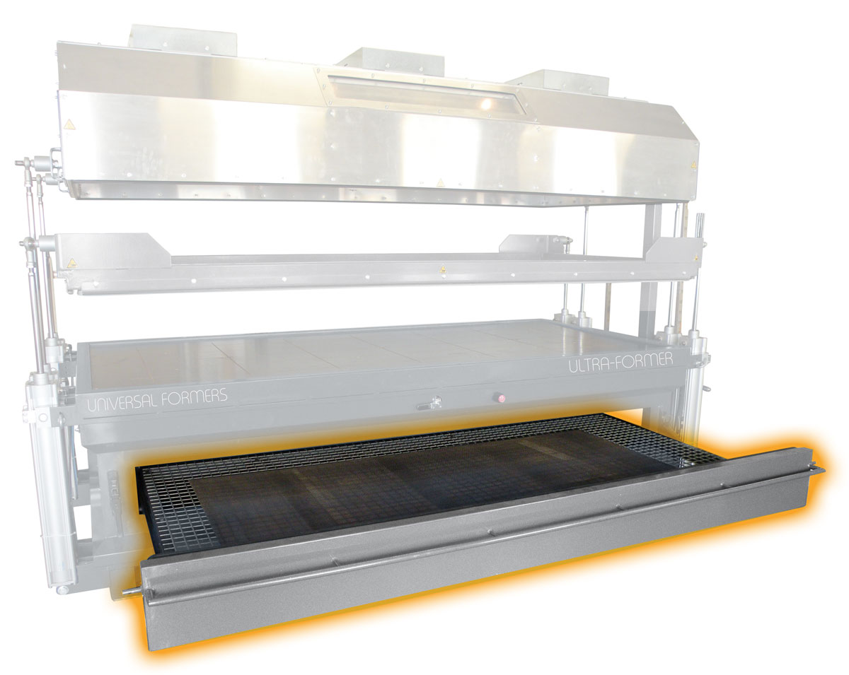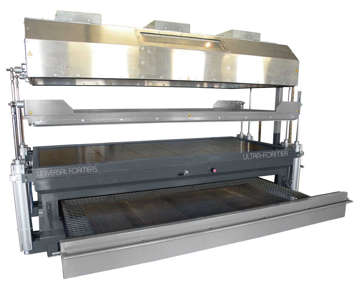 Deep draw forming: For ‘one offs’ or multipals utilising the fully adjustable steel frames to ensure minimum material wastage and exceptional user control.